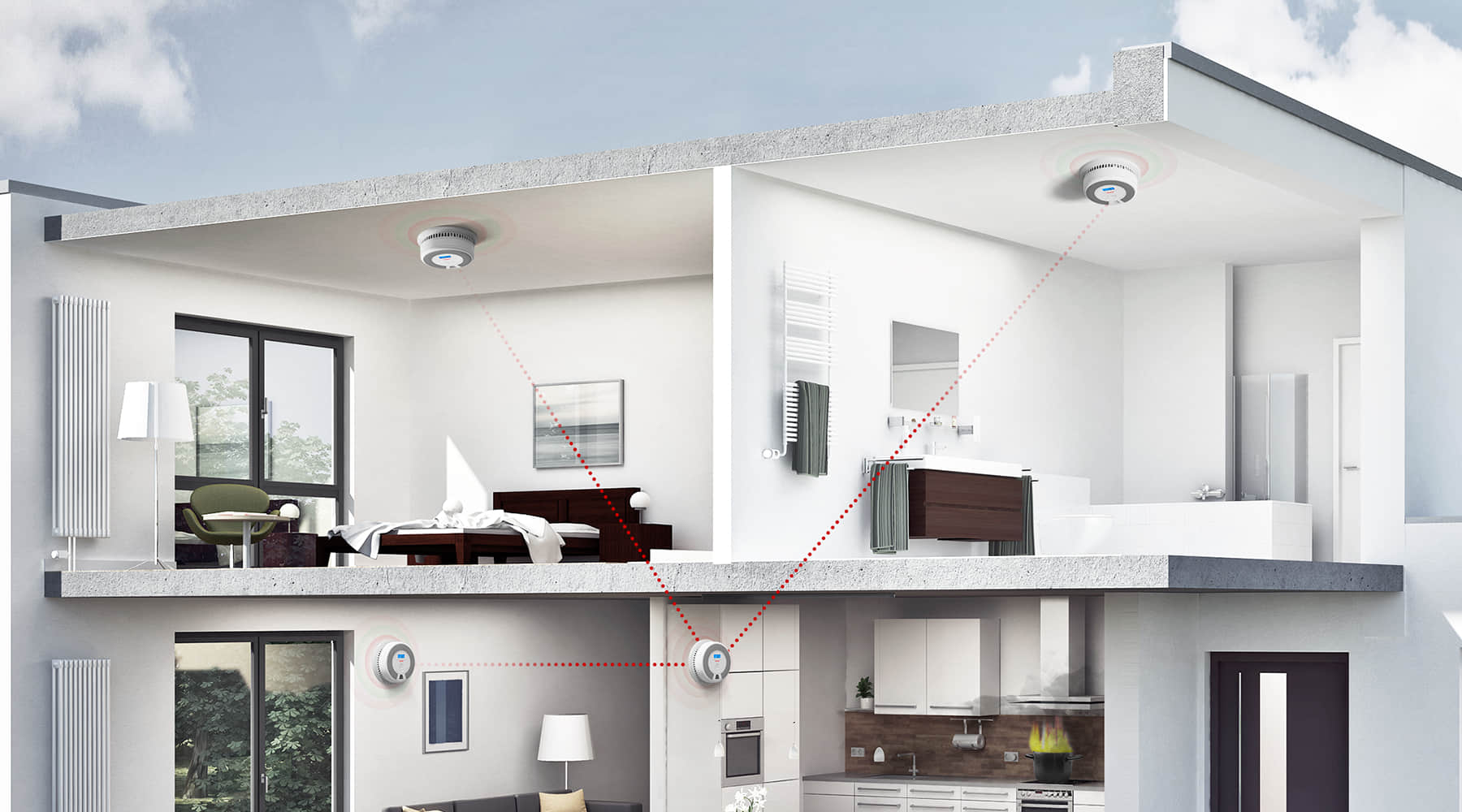 - Kablosuz alarmlar birbirine bağlıdır. Bir alarm etkinleştirildiğinde, hepsi çalar.