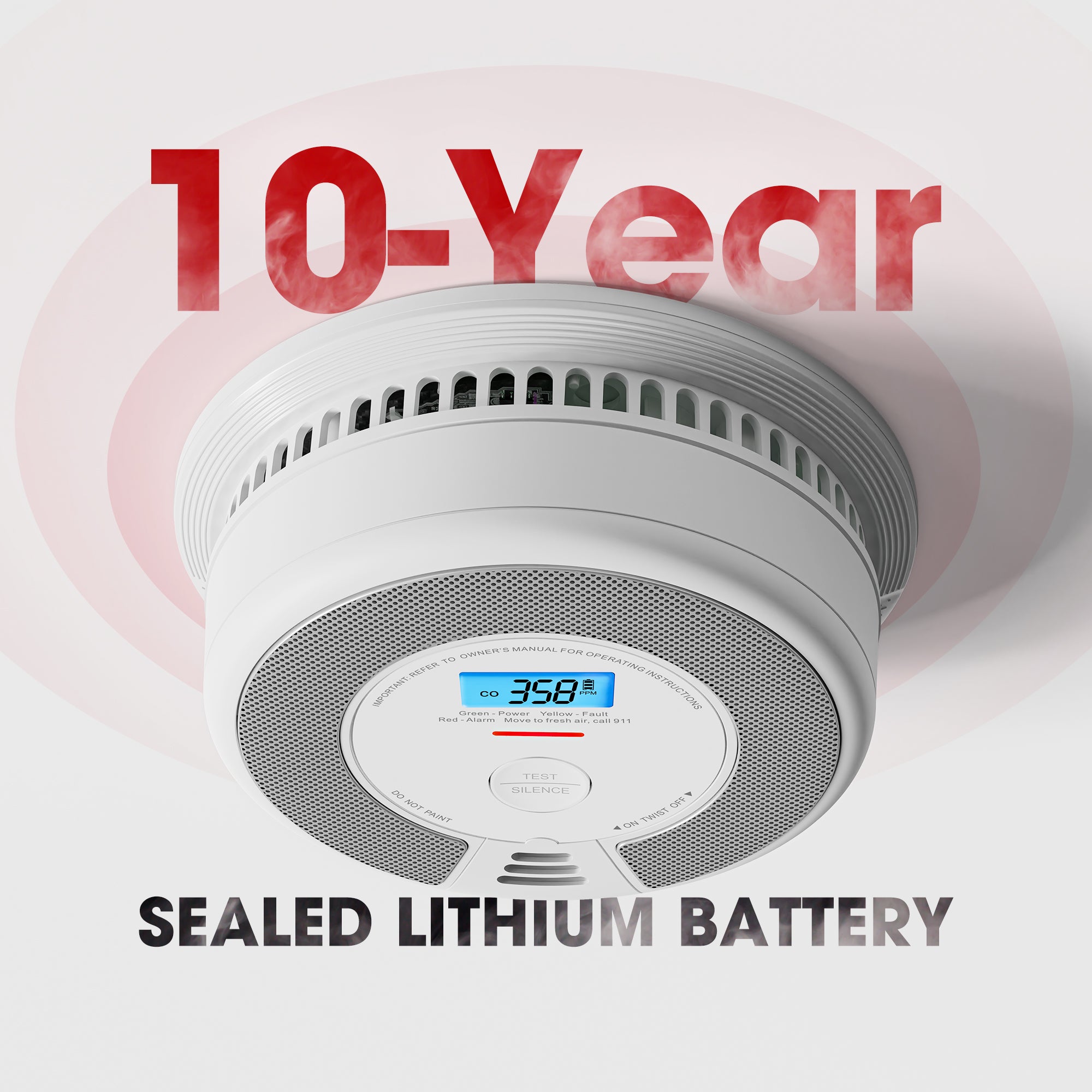 - Büyük ve okunması kolay LCD ekran, karbon monoksit seviyesini milyon başına parçacık (PPM) cinsinden göstererek, pil ömrünü göstererek ve cihazın durumunu görüntüleyerek bilgi sahibi olmanıza yardımcı olur.