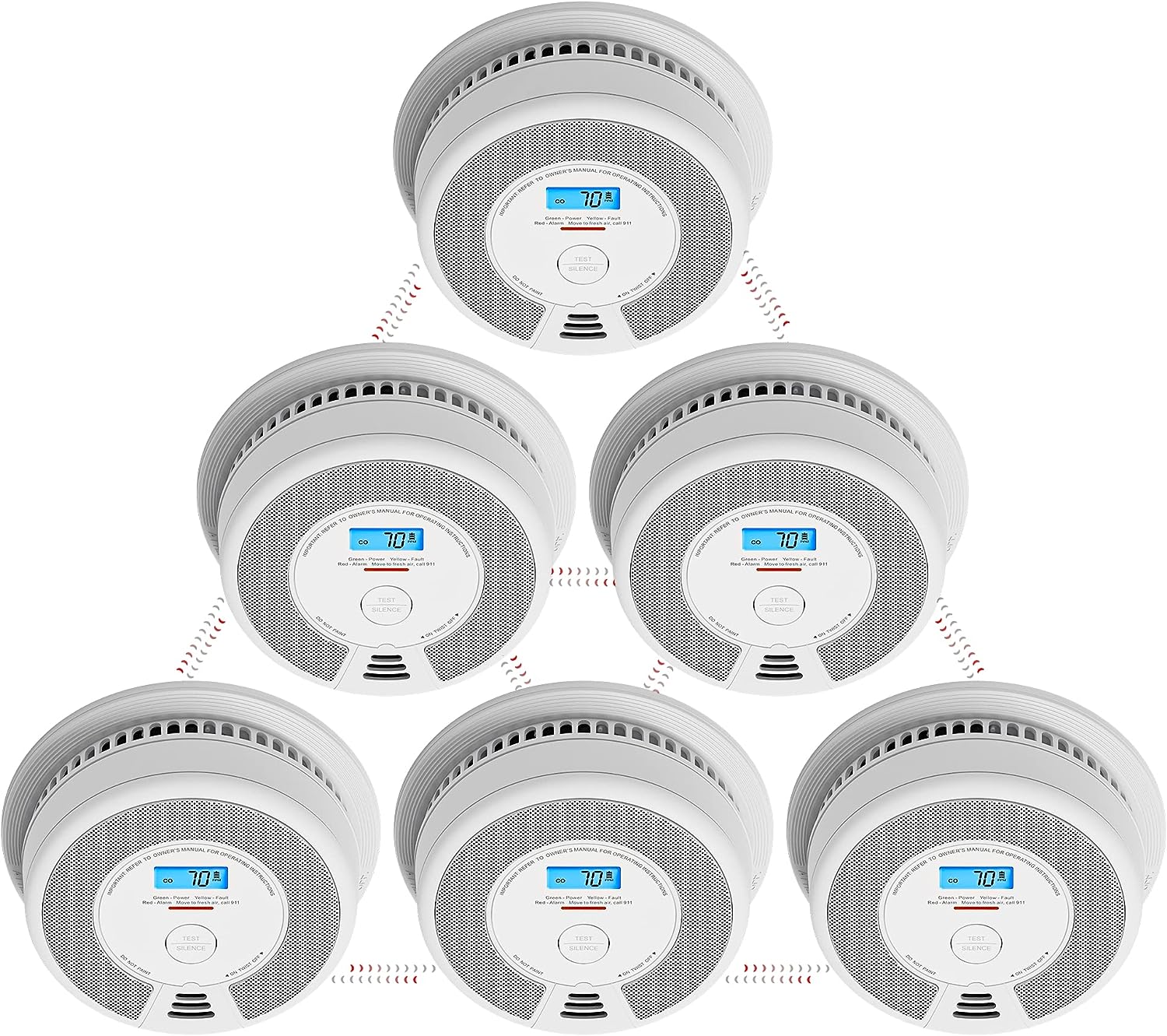 - Acil bir durumda, kaynak alarmı kırmızı renkte yanıp sönerken diğer üniteler kırmızı ve yeşil renkte dönüşümlü olarak yanıp sönecektir, böylece tehlikenin nereden geldiğini kolayca bulabilirsiniz.